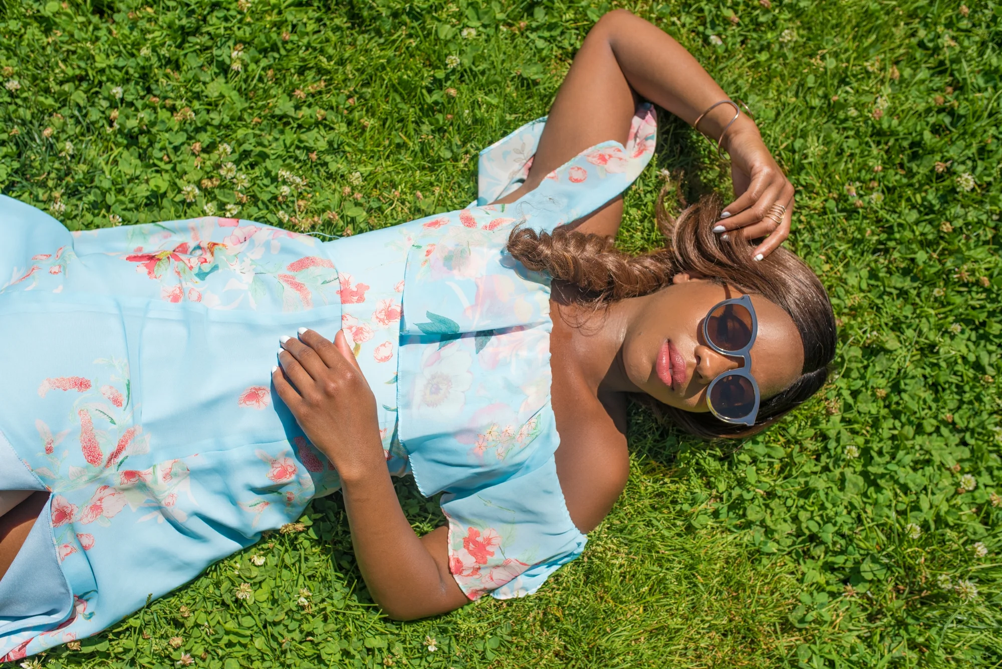My style sometimes gets edgy, but at heart I love pieces that are feminine, romantic and soft. Blazing summer temps usually make me want to stay casual, but some occasions call for girly glamour. This baby blue floral ruffle dress fits the bill pretty perfectly. The print is subtle and the robin's egg blue shade is heavenly. I got this beauty from Rent the Runway and I thought it would be perfect for a brunch party. It was a little bit fancier than I expected since it was a chiffon fabric and I thought it was cotton, but I loved it! As soon as I tried it on I started feeling like a long-lost Disney princess.